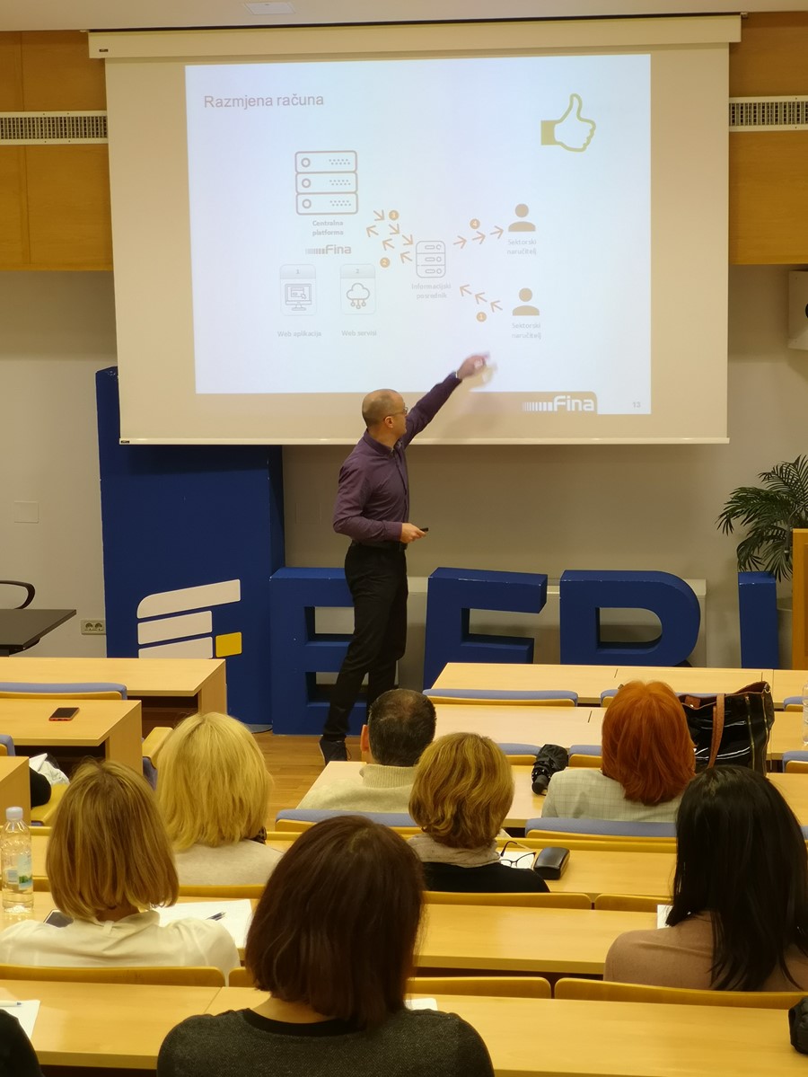 FINA kao provoditelj Zakona, vodi i održava Servis e-Račun za državu kao Centralnu točku preko koje se razmjenjuju svi računi s osnove javne nabave. Na radionici je bio prezentiran koncept rada sustava kao i uloga pojedinih sudionika u funkcioniranju sustava.
