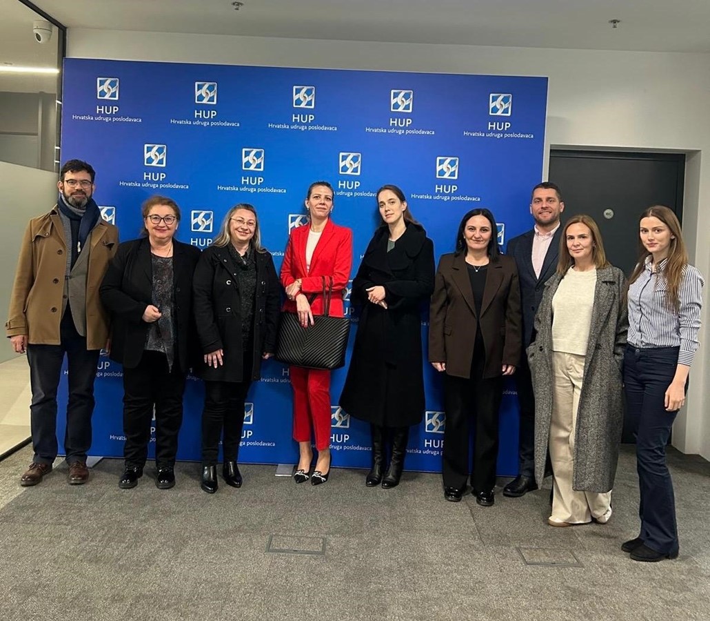 U prostorijama Hrvatske udruge poslodavaca održan je radni sastanak s delegacijom Ministarstva gospodarstva i rada Republike Sjeverne Makedonije te novonastale nacionalne Agencije za inovacije, znanstveni, tehnološki razvoj i poduzetništvo (INOVA), institucije ekvivalentne hrvatskom HAMAG-BICRO-u. Sastanak je održan u sklopu EU projekta „EU for SME Development”, koji za korisnika – Ministarstvo gospodarstva i rada Republike Sjeverne Makedonije – provodi konzorcij predvođen IBF Impactom iz Belgije.