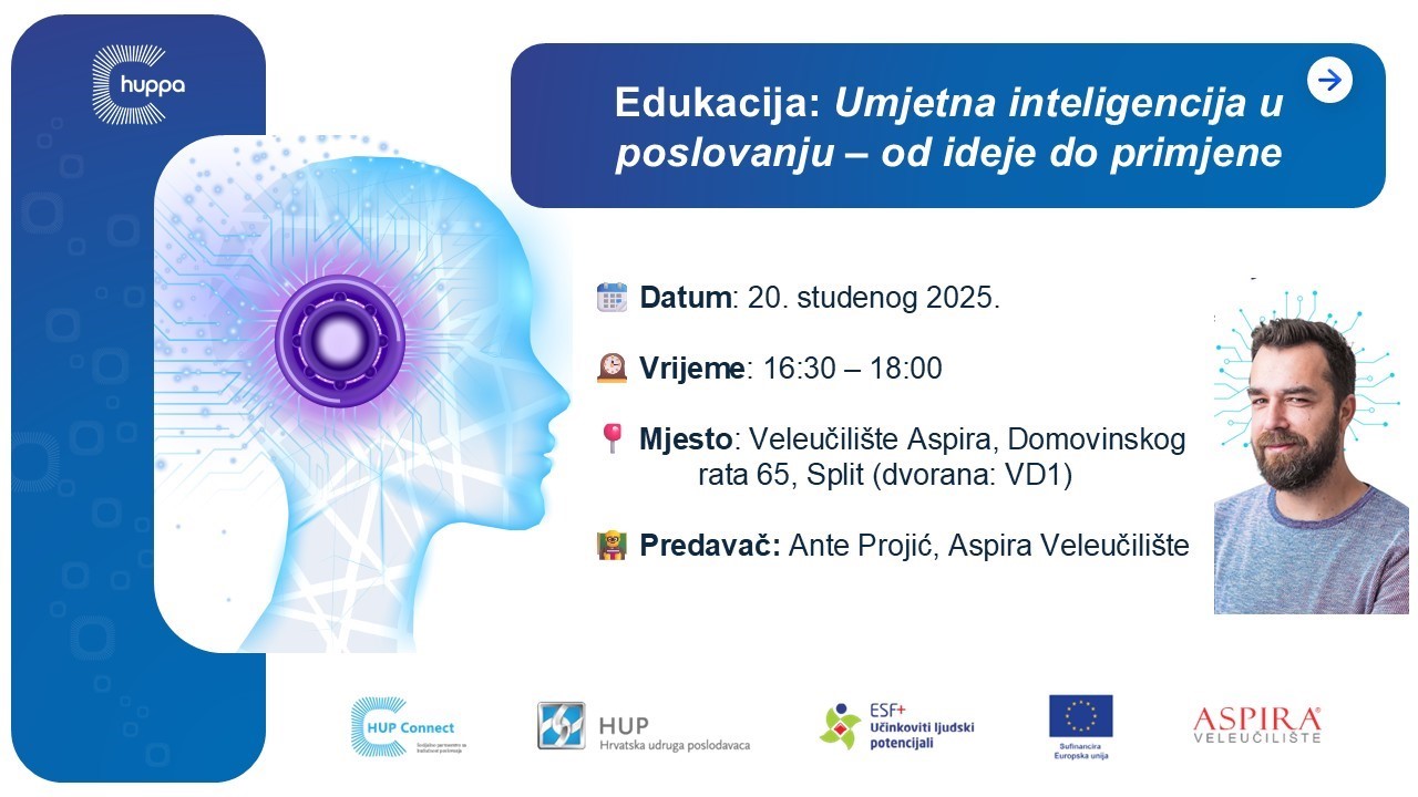 poslovnim procesima. Cilj radionice je pokazati kako umjetna inteligencija može unaprijediti