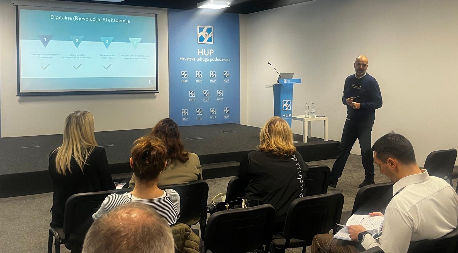Poslovna akademija Hrvatske udruge poslodavaca nastavila je s aktivnostima usmjerenima na jačanje znanja i kompetencija svojih članova u području umjetne inteligencije. U okviru ciklusa u suradnji HUPPA-e i Digitalne (R)evolucije 9. prosinca 2025. u prostorima HUP-a u Zagrebu održana je radionica „Primjena umjetne inteligencije u poslovnim procesima“.
