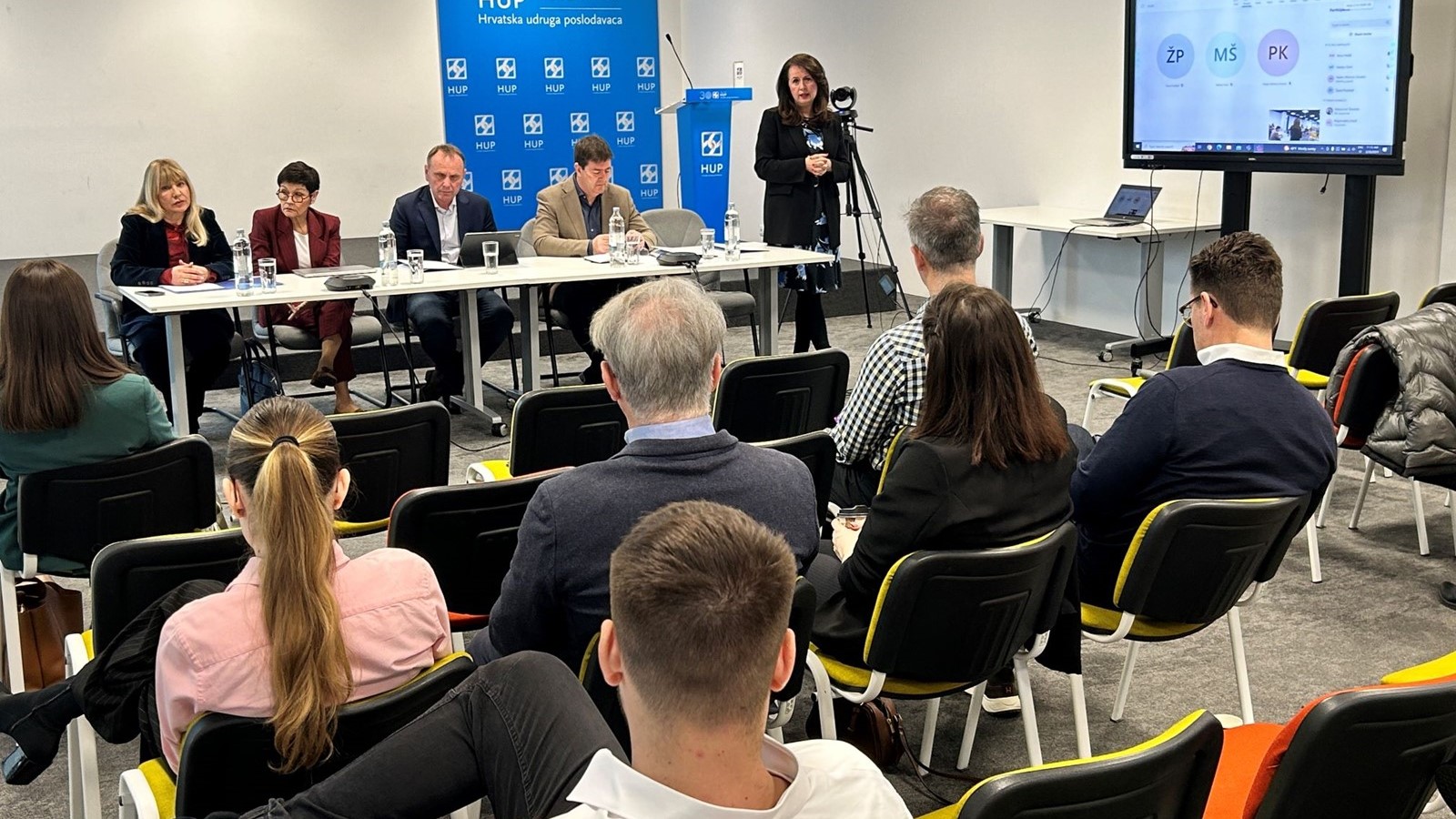 Prije radnog dijela skupštine, prisutnima se obratila Irena Weber, glavna direktorica HUP-a. Ona je izrazila zadovoljstvo upoznavanjem s radom udruge te članovima Izvršnog odbora. U kraćem izlaganju, osvrnula se na horizontalne i vertikalne teme, pa je tako govorila o poreznoj politici, nepravedno boljem statusu rentijerstva u odnosu na ostale djelatnosti, zabrani rada nedjeljom, ograničenju cijena energenata, problemu nedostatka radne snage te Zakonu o radu koji, usprkos trudu HUP-a ostaje i nefleksibilan i guši gospodarstvo. Najavila je daljnje lobiranje HUP-a za izmjene ovog zakona.