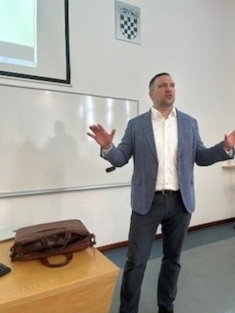 Mateo Perak, inženjer računarstva, poduzetnik i IT menadžer s preko 26 godina iskustva u tehnološkoj industriji studentima je govorio poduzetništvu, start-up kompanijama, pokretanju kompanije iz same ideje i o cijelom svom poduzetničkom putu, greškama i neuspjesima te kako ih je preživio.
