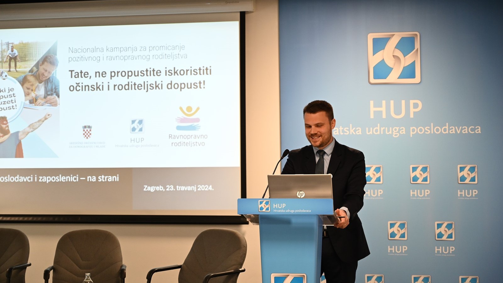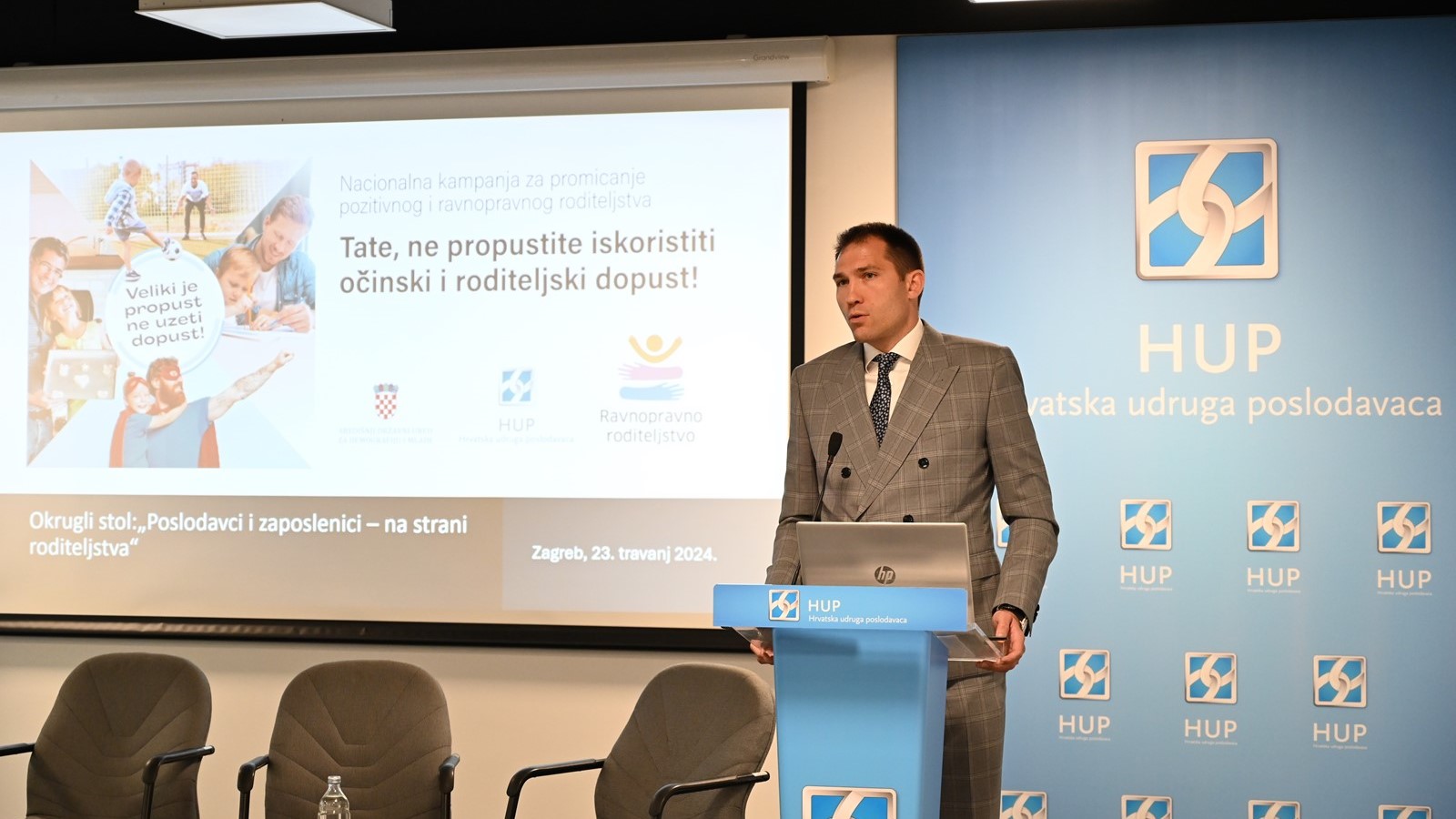 U sklopu kampanje, značajnu ulogu ima senzibilizacija poslodavaca te važnost njihove uloge na odluke zaposlenika – roditelja u odnosu na njihov poslovni i obiteljski život, kao i pružanje aktivne podrške zaposlenicima – roditeljima, stoga je u suradnji s HUP-om održan okrugli stol, čiji povod su bili i i rezultati istraživanja o roditeljskom i očinskom dopustu*, koje je za SDUDM Provela agencija Ipsos u rujnu 2023. godine. Rezultati tog istraživanja pokazuju kako je percepcija ispitanika da muškarci koji koriste roditeljski dopust nerijetko imaju problema s poslodavcima, u većoj mjeri nego majke. Među glavnim razlozima koje roditelji navode kao prepreku za korištenje prava iz sustava rodiljnih i roditeljskih potpora je uvjerenje da bi poslodavac negativno reagirao na zahtjev oca za korištenje očinskog/roditeljskog dopusta. S druge strane, pokazalo se da muškarci koji su koristili roditeljski dopust većinom imaju pozitivnu percepciju reakcija kolega na njihovo korištenje roditeljskog dopusta. Prednosti uključenosti očeva u brigu i odgoj djeteta od najranije dobi vidljive su u različitim područjima i razdobljima djetetova života, a o važnosti očevog angažmana u odgoju vlastite djece i o ravnopravnoj podjeli obiteljskih obveza danas svjedoči niz istraživanja, kao i pozitivni primjeri iz europskih zemalja koje su prepoznale važnost zastupanja takvih vrijednosti.