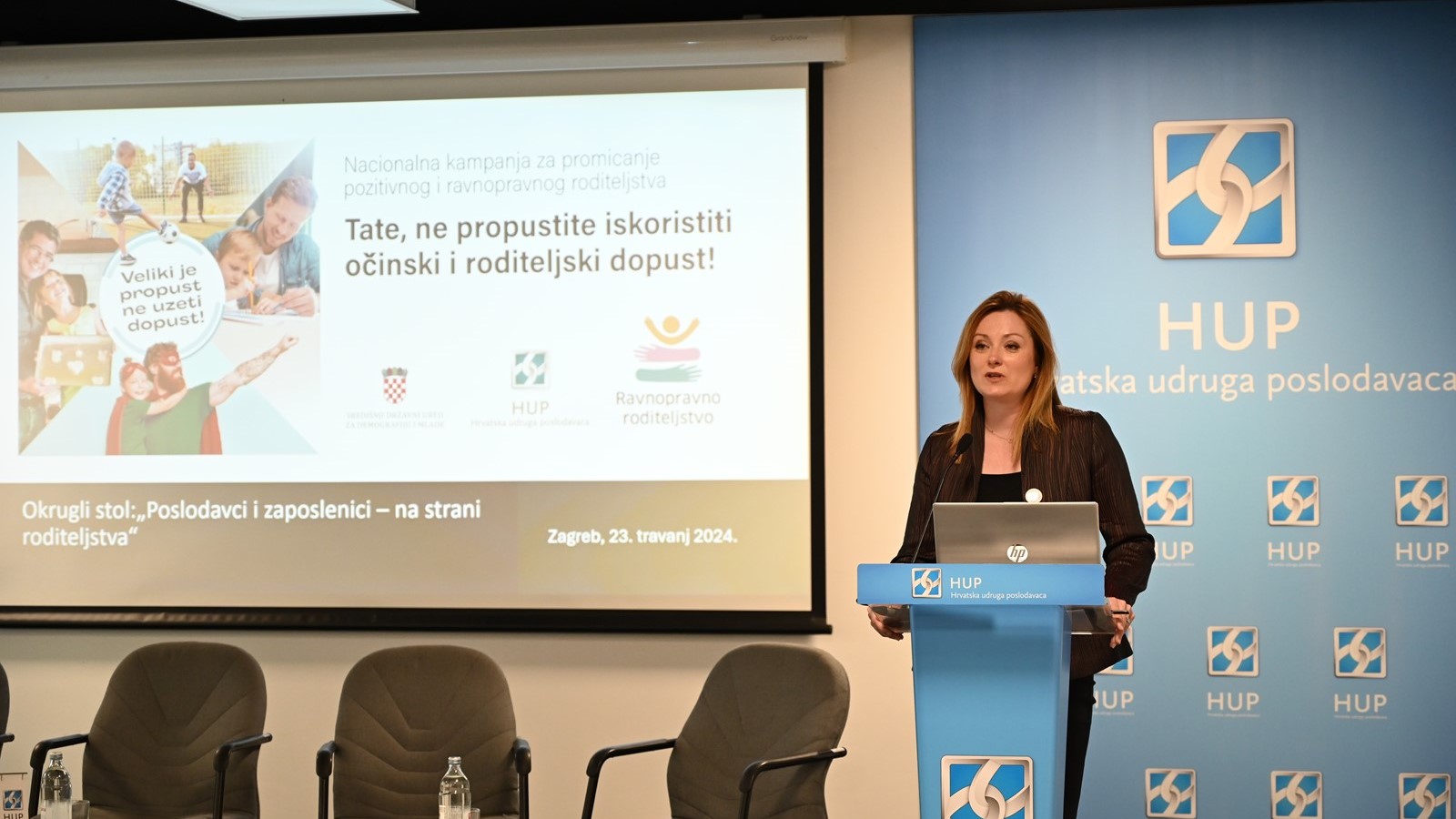 Upravo kako bi ovu temu dodatno produbili, SDUDM i HUP su smatrali važnim održati ovaj okrugli stol, na kojem su uvodna izlaganja redom iznijeli g. Petar Šimić, predsjednik HUP-Udruge malih i srednjih poduzetnika, dr. med Željka Josić, državna tajnica Središnjeg državnog ureda za demografiju i mlade, g. Ivan Vidiš, državni tajnik Ministarstva rada, mirovinskoga sustava, obitelji i socijalne politike, gđa. Višnja Ljubičić, pravobraniteljica za ravnopravnost spolova te gđa. Anamarija Sočo, predsjednica organizacije Status.