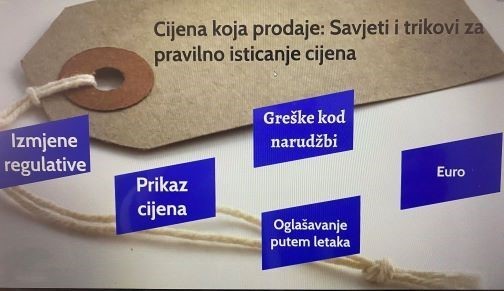 Tijekom edukacije prisutnima su izložena grafička rješenja za sva nova pravila, ukazano je na krive prakse i primjere u oglašavanju tih akcija, kao i iskazivanju cijena u prodavaonicama i u Internet trgovini. Teme koje su obrađene na webinaru bile su: gdje i kako u web shopu i prodavaonici pokazati cijene, najčešće greške kod prikaza cijena u eurima i kako ih izbjeći, kako ispravno oglasiti popust (kad ne smijete oglašavati da je aktualan popust), kako se ističu cijene za jedinicu mjere npr. litre, ml, kg, što je referentna cijena?, kako se određuje najniža cijena u posljednjih 30 dana (cijene uz promo kod, iz kluba vjernosti?), kako nadzorna tijela gledaju na novo pravilo o prikazu najniže cijene u posljednjih 30 dana (mišljenja Ministarstva gospodarstva i održivog razvoja), isticanje cijena u reklamnim materijalima, isticanje cijena u outlet trgovini i označavanje cijena usluga.