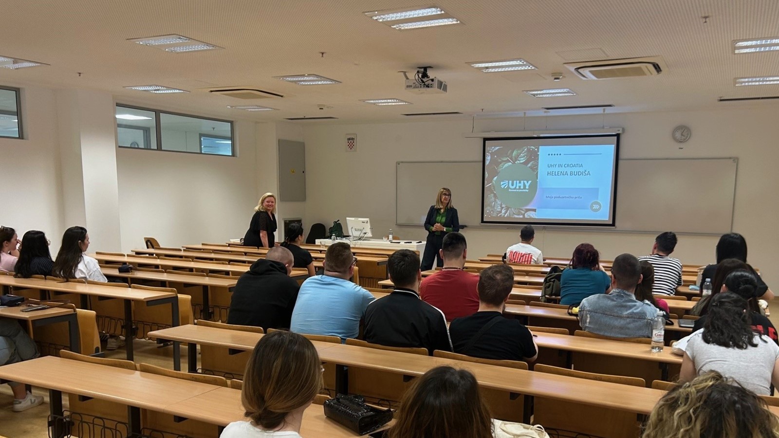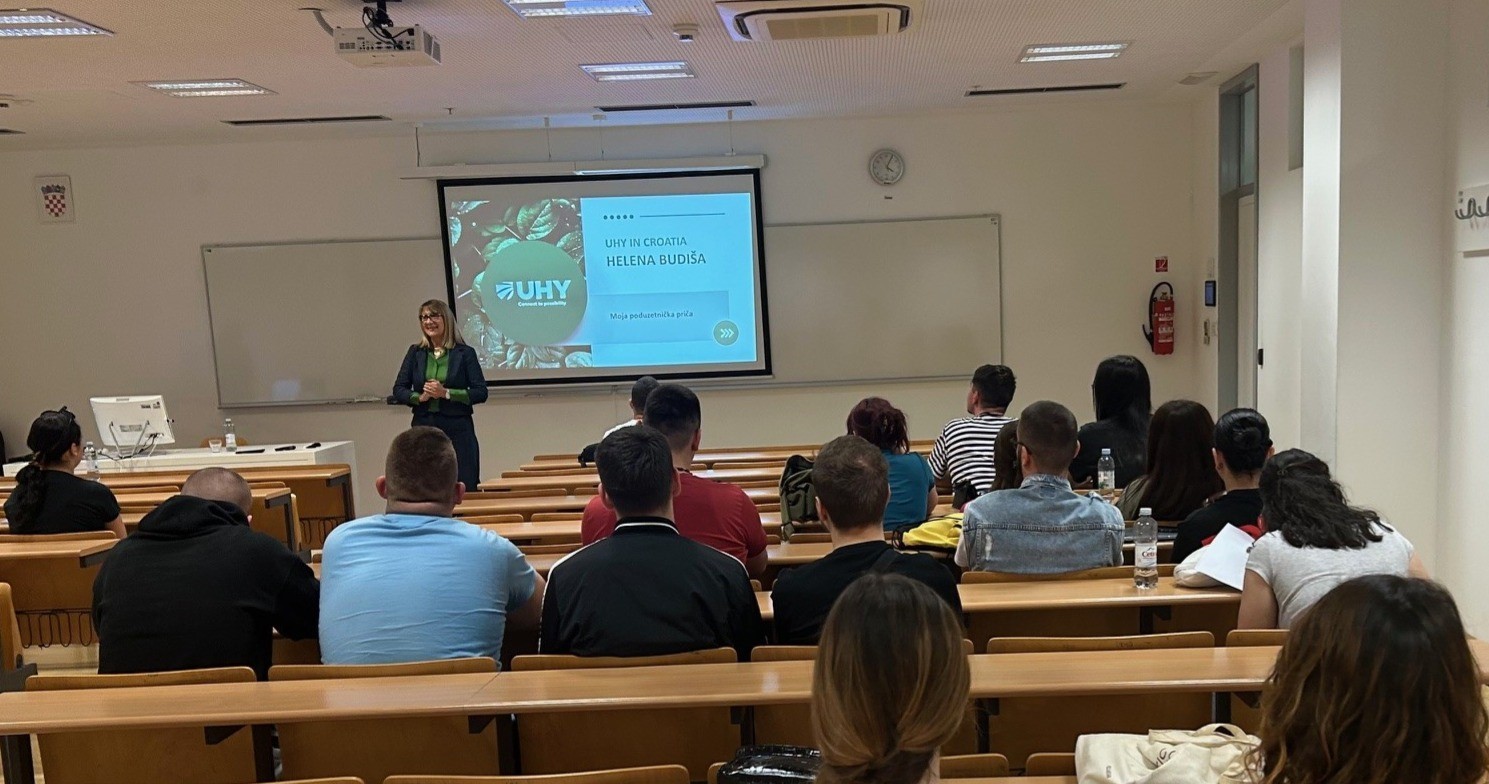 Tijekom predavanja, Helena Budiša je podijelila sa studentima svoju inspirativnu poduzetničku priču o tome kako je izgradila karijeru u visoko zahtjevnom sektoru, kako prepoznaje i rješava izazove u poslovanju te kako se kontinuirano zalaže za jačanje poduzetništva, posebno među ženama. „Kako bi se istaknula na velikom tržištu, bila sam svjesna da nešto moram raditi drugačije… brzo sam shvatila da to drugačije znači – biti otvoren za promjene i imati hrabrost“ istaknula je.