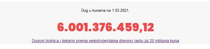 tjedna na mrežnim stranicama HUP-a (http://www.hup.hr/) objavljen Brojač duga, koji se redovito