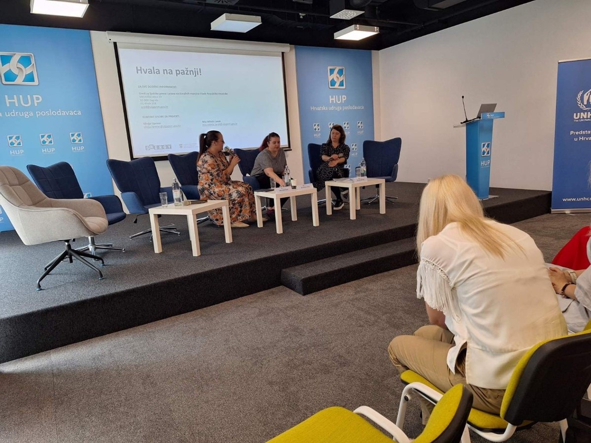 Drugi panel donio je iskustva izravno s tržišta rada. Mihaela Kovaček Pejić iz IKEA-e Hrvatska predstavila je program integracije izbjeglica koji se provodi unutar njihove kompanije, istaknuvši kako je važno pružiti konkretne prilike za uključivanje kroz strukturiranu i podržavajuću radnu okolinu. Uz nju je sudjelovala i Oksana Danylenko, koja je upravo završila taj program i podijelila svoje osobno iskustvo zaposlenja i prilagodbe. Sadmir Hošić iz Textile Care Services, dopredsjednik HUP-ove Udruge malih i srednjih poduzetnika, govorio je o izazovima s kojima se poslodavci susreću prilikom zapošljavanja stranaca te naglasio važnost sustavne podrške i razumijevanja s obje strane.
