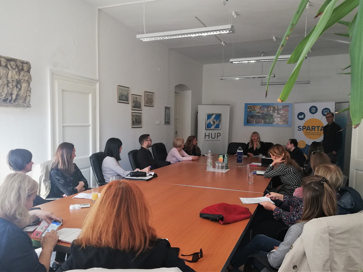 Direktorica HUP-ovog regionalnog ureda Split, Vesna Ivić-Šimetin ukratko je izložila izmjene i nadopune dokumenta Analiza socijalnog dijaloga u Splitsko-dalmatinskoj županiji. Stvari se mijenjaju sporo, u nekim područjima došlo je do poboljšanja, a na području socijalnog dijaloga u industriji, stanje je još lošije. Pojam socijalnog dijaloga bio je uvijek vezan isključivo za socijalne partnere, HUP, sindikate i predstavnike Vlade na nacionalnom te županija na lokalnom nivou. Tako su u prvom dokumentu, u istraživanje bili uključeni samo lokalni socijalni partneri, poslodavci, sindikati i županija. U projektu SPARTAK uključeni su svi dionici koji na izravan ili neizravan način sudjeluju u socijalnom dijalogu, predstavnici ustanova i udruga civilnog sektora i predstavnici institucija iz javnog sektora koji su uz predstavnike HUP-a dali neprocjenjiv doprinos analizi. Na okruglom stolu se raspravljalo o zajedničkim problemima poput negativnih iskustava sa ugovornim tijelima odgovornim za EU projekte, socijalnom poduzetništvu koje se još uvijek u društvu ne percepira kao poduzetništvo, problemima s kojim se susreću humanitarne udruge kada je riječ o donacijama i humanitarnoj pomoći, i slično. U raspravi su aktivno sudjelovali Đordana Barbarić, Udruga Most, Mirjana Kučer, Udruga Domine, Sandra Čanić, Split d.d., Lidija Vukadin Vranješ iz Makarske razvojne agencije, Petar Letica iz Grada Splite te drugi. Mirjana Kučer iz Udruge Domine je kazala da pravog razumijevanja za rad udruga nema te da se udruge svakako moraju uključiti u važna pitanja poput tržišta rada i legislativu. Đordana Barbarić kazala je da je Udruzi Most trebalo 11 godina da dokaže da beskućnici postoje, da treba jako puno vremena i upornosti za postizanje cilja. Ali dogodio se dijalog, dogodile su se pozitivne i zakonodavne promjene. Pomoglo je i umrežavanje na nacionalnoj razini. Letica je govorio o Socijalnom vijeću koje postoji na razini Grada Splita. Zajednički zaključak je da su važni ljudi, da je potrebno jako puno kontakata, umrežavanje i suradnja. Kad su u pitanju pitanja od općeg interesa, treba udružiti snage i zajednički lobirati za promjene. Martin Urlić iz CEDRE je ukratko prezentirao Socijalno vijeće koje će se baviti konkretnim pitanjima, interesima i potrebama javnog, civilnog i privatnog sektora. Cilj vijeća je unaprijediti kvalitetu socijalnog dijaloga kroz razvoj i jačanje administrativnih i stručnih kapaciteta socijalnih partnera na lokalnoj i sektorskoj razini. Tako će za članove Vijeća, osim zajedničkih sastanaka, biti organizirane i edukacije, poput seminara o kolektivnom pregovaranju. Socijalno vijeće omogućit će lakše povezivanje i artikuliranje interesa te djelovanje na savjetodavnoj razini.
