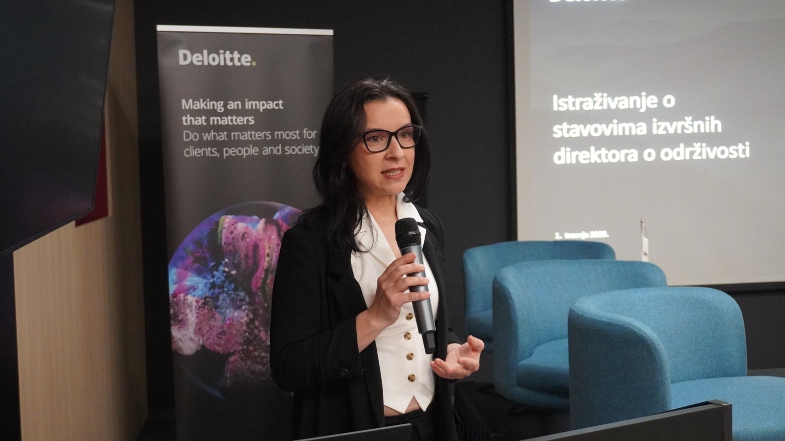 Događanje je započelo uvodnim govorom Helene Schmidt, voditeljice hrvatskog ureda Deloittea i partnerice u Odjelu poreza. Karla Grgić Totić, viša menadžerica u Deloitteovom Odjelu za strateško savjetovanje i transakcije, predstavila je ključne nalaze istraživanja koji su pokazali da su klimatske promjene i dalje među tri najvažnija pitanja među izvršnim direktorima, važnija čak i od političke nesigurnosti i borbe za talente.