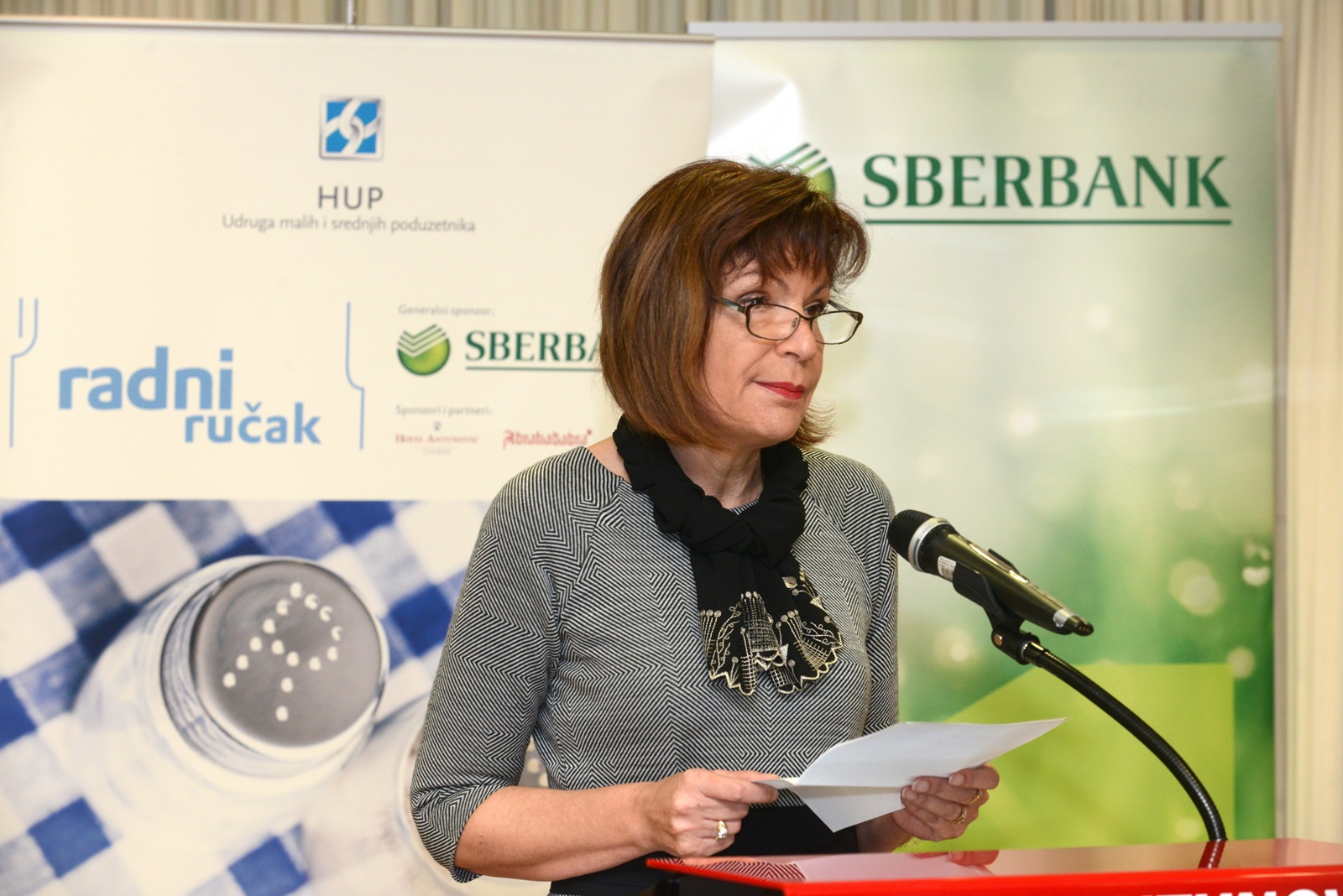 Anny Brusić, direktorica Udruge malih i srednjih poduzetnika ovom je prilikom istaknula kako su poduzetnici u proteklih dvanaest godina, koliko se organizira Radni ručak s poduzetnicima, ugostili predstavnike već treće Vlade no to isto ukazuje kako se dvanaest godina raspravlja kako popraviti stanje u poduzetništvu, i koje se mijenja, ali ne brzinom koja bi bila zadovoljavajuća. Iako se cijelo vrijeme razgovara o reformama, osjeća se razina nestrpljenja i u poslovnoj zajednici u vidu toga hoće li se one zaista početi događati. Pozdravila je budući rad ministra Horvata te naglasila kako od njega svi poduzetnici imaju velika očekivanja te očekuju da postane gromobran koji će štiti poduzetnike od loših propisa, zakona, pravila i uredbi, ali za to je potreban uigran orkestar cijele Vlade jer jedan ministar to ne može sam. Petar Lovrić, predsjednik Udruge malih i srednjih poduzetnika izjavio je sljedeće: „Čestitao bih vladi na ne-donošenju zakona. GEM istraživanje pokazalo je porazna istraživanja za Hrvatsku jer su svi pokazatelji za poduzetničko okruženje jako slabi. Unatoč tome, Hrvatska je osuđena na uspjeh, kapitala ima. Ključna poruka je da su poduzetnici spremni preuzeti rizik, ali klima koju je država stvorila jest loša. Molimo ministra da bude nositelj ideje „jedan piši tri briši“ tj. da se prema britanskom modelu za svaki doneseni zakon, tri druga moraju obrisati – da nijedan zakon koji se odnosi na poduzetnike ne može proći, a da zaobiđe poduzetnike tj. ministra nadležnog za poduzetništvo.“ Naglasio je kako je dovoljna činjenica da u zakonima i propisima postoji čak 15.000 članaka koji kažnjavaju i represivni su za poduzetnike. Gordana Deranja, predsjednica HUP-a u svom je uvodnom govoru podržala ministra Horvata i novu Vladu u nastojanjima da se provode strukturne reforme, pri čemu je istaknula: „Ministarstvo poduzetništva i obrta je važno ministarstvo jer je odgovorno za male i srednje poduzetnike koji su temelj gospodarstva. Malo i srednje dijeli sudbinu cijelog gospodarstva, ali neke probleme još snažnije osjeća i s njima se nosi teže nego cijeli sustav. Stalne promjene zakona, pravna nesigurnost, to su problemi svih poduzetnika i poslodavaca, ali su još veći teret malim poduzetnicima. Važno je raditi na njihovom uklanjaju i imati na umu specifičnost ovog sektora pri donošenju novih propisa.“ Ministar poduzetništva i obrta Darko Horvat već je prepoznao neke žarišne točke koje treba brzo rješavati: učiniti pristup financijskim sredstvima iz EU fondova puno dostupnijima nego su bila dosad, zbog presloženih procedura i kriterija koje je teško ostvariti, ali isto tako da Ministarstvo poduzetništva i obrta treba biti ono koje će „braniti“ poduzetništvo od svih nepoduzetnih struktura, zakona, propisa i birokracije. Ministar je najavio aktivnosti i mjere kojima namjerava sa svojim suradnicima dugoročno stvarati poticajne uvjete za poslovanje malih i srednjih poduzetnika i konkurentnije gospodarstvo. U svom govoru je istaknuo i četiri ključne poruke: „Hrvatsko gospodarstvo mora rasti, HZZ mora s brojke od 300 000 doći na manju brojku, izvoz mora rasti i dostupnost financijskih instrumenata na tržištu Hrvatske mora biti veća.“ Najavio je kako će se veliki resursi uložiti u borbi protiv nelikvidnosti, u drugačiji rad javnih poduzeća koja nisu prepoznata kao adekvatan servis poduzećima i građanima, kao i lokalnu administraciju i upravu. Sve ove aktivnosti trebaju unaprijediti poslovnu klimu i potaknuti investicije, kako domaće, tako i strane, ali je napomenuo kako i među prisutnima na Radnom ručku sigurno ima puno potencijalnih investitora koji se ne usude investirati zbog birokratskih i pravnih zapreka. Po investitore ne treba ići samo izvan Hrvatske. Naglasio je kako se procjenjuje da je potencijal investitora u Hrvatskoj čak 12 milijardi kn, a koji će otvoriti 7.300 novih radnih mjesta. Uskoro se očekuj donošenje reformskog paketa mjera, s pratećim zakonima, koji će olakšati investiranje i ukloniti pravnu nesigurnost. Ministar je ovom prilikom pohvalio i servis e-poslovanja kao jedinstveni servis za pomoć poduzetnicima kojim se uklanjaju administrativni troškovi te barijere. Također je najavio i uvođenje dualnog sustava obrazovanja - obrazovanja koje bi spajalo praktična i teorijska znanja, pri čemu će nastojati uz pomoć akademske zajednice oblikovati obrazovni sustav usklađen s potrebama tržišta rada odnosno radnu snagu za globalnu konkurentnost. Posebno je to povezano s činjenicom kako u Hrvatskoj već duži niz godina postoje strukturne neravnoteže na tržištu rada, na kojem istovremeno nedostaje radna snaga pa se ona mora uvoziti i veliki broj nezaposlenih koji nemaju adekvatne kompetencije. U tome će u narednom razdoblju biti tim važnija uloga poslodavaca koji će jasno moći reći koji kakvi im kadrovi trebaju i s kojim kompetencijama. Upozorio je i na nedovoljnu iskorištenost EU strukturnih fondova u poduzetništvu te istaknuo da će raditi na uklanjaju administrativnih prepreka koje opterećuju poduzetnike prilikom prijava natječajne dokumentacije. Kroz strukturne fondove bit će raspisano osam novih natječaja koji će biti dostupni hrvatskim gospodarstvenicima u ovoj godini s ukupnim fondom od 430 milijuna kuna. Kao četiri investicijska prioriteta navedeni su poboljšanje inovativnosti, povećanje učinkovitosti, bolji pristup izvorima financiranja i stvaranje povoljnog okruženja za poslovanje. Vrlo skoro očekuje se i donošenje novog Nacionalnih zajedničkih pravila, a koja su do sada kočila jednostavnije i lakše sudjelovanje na natječajima iz EU fondova. Ministar Horvat također je najavio drugačije i nove oblike financiranja putem HBOR-a, koji će, kako bi bio bliži poduzetnicima, otvoriti šest do osam novih poslovnica, ali će obavljati i više angažmana u kreditiranju poduzetnika. Smatra kako HBOR, za razliku od komercijalnih banaka, 