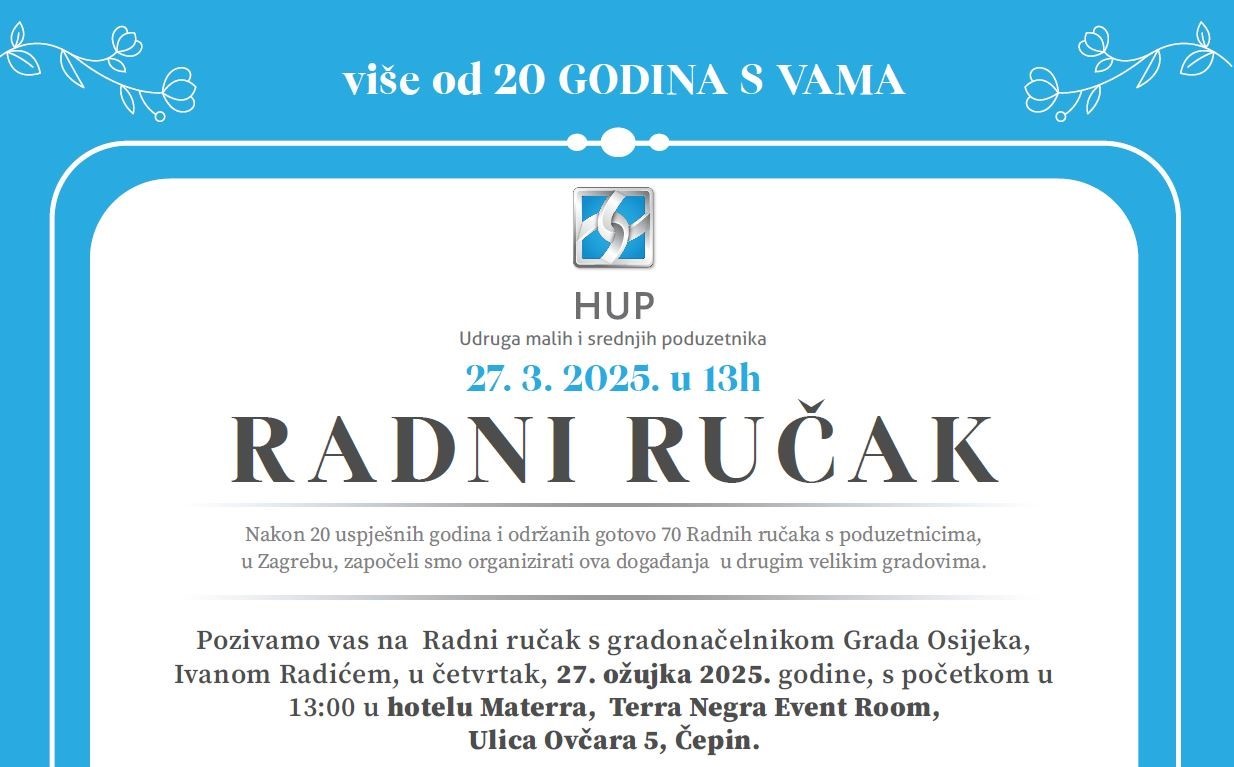 vas, nakon Zagreba, Splita i Rijeke, pozivamo na Radni ručak s gradonačelnikom