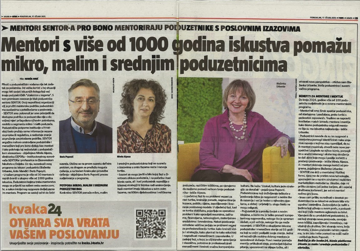 📍Sentor smo pokrenuli jer smo primjetili da dostupna podrška za poduzetnike nije u dobrovoljnoj mjeri prilagođena potrebama poduzetnika.