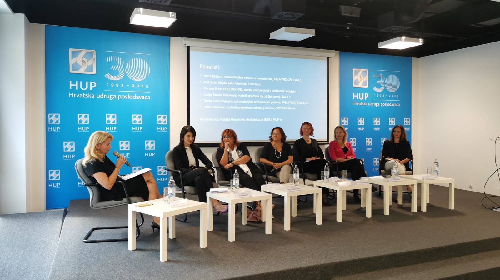 O interesu poslovnog sektora za ESG teme, svjedoči velika posjećenost. Na panelu su predstavnice različitih sektora i tvrtki (Podravka, INA,