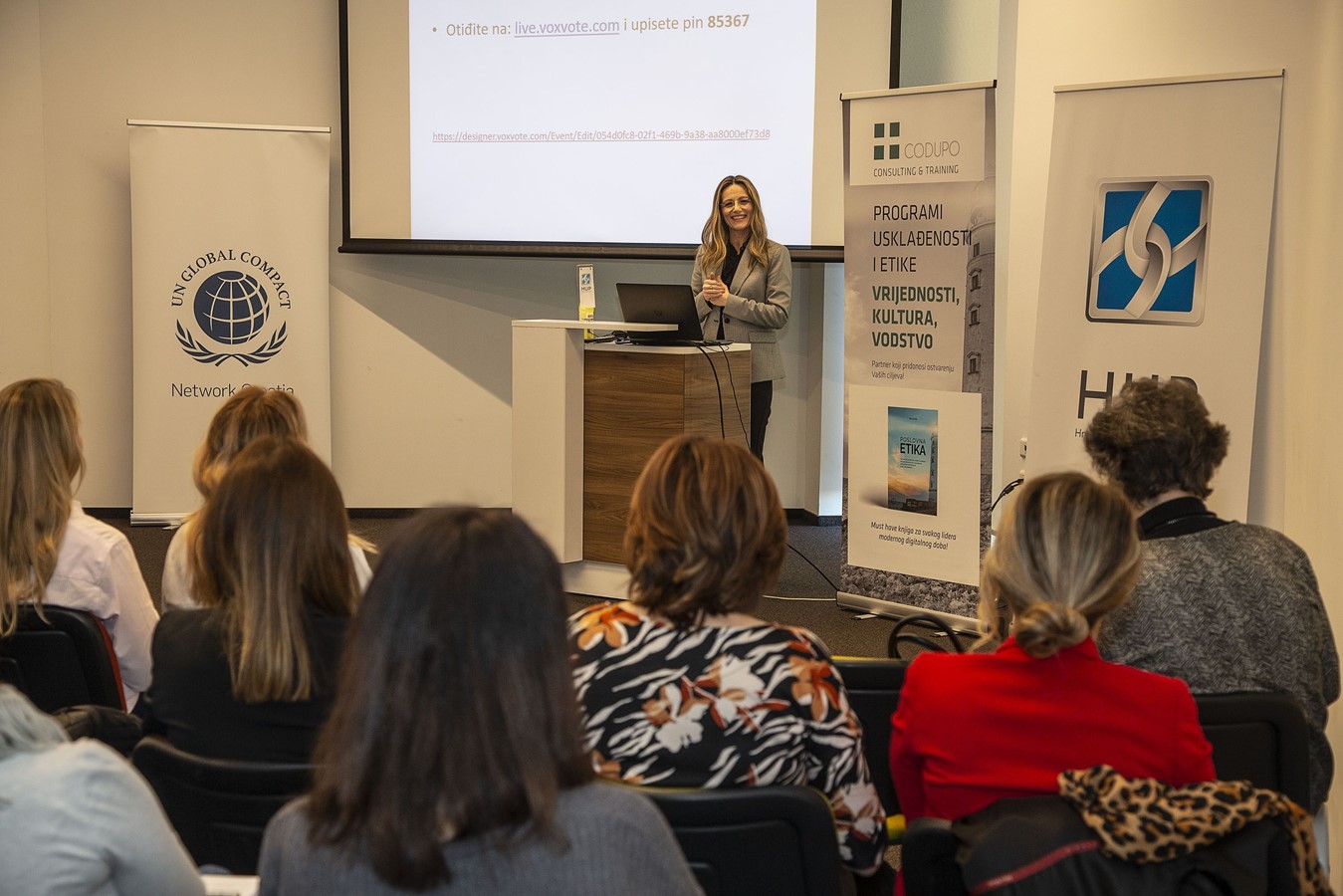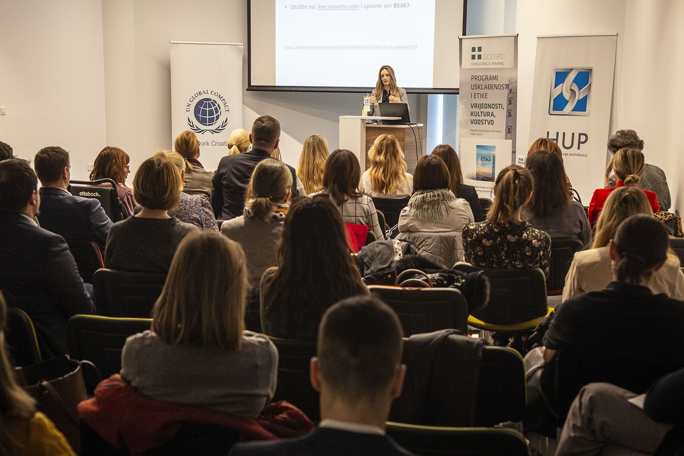 prostorijama Hrvatske udruge poslodavaca za prepunu dvoranu članova HUP-a i UN